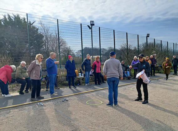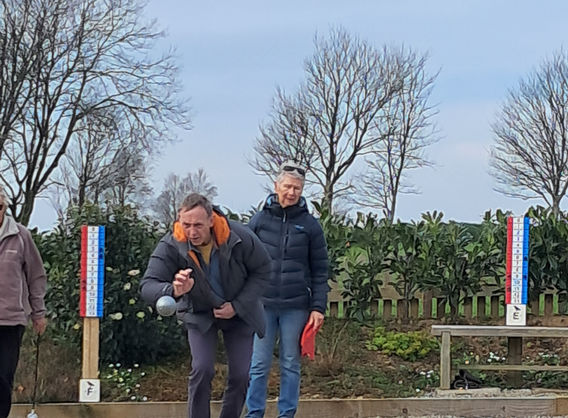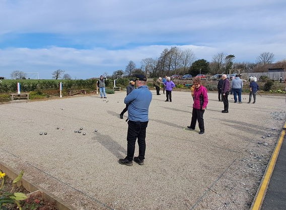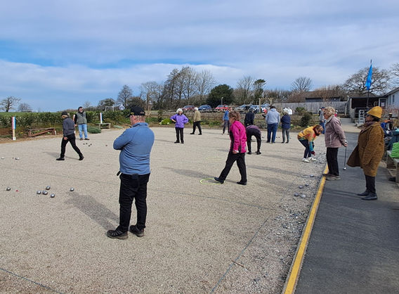 Tregony prevailed on our home terrain, no doubt helped by the local knowledge of how the boules would behave relative to the slope.!. It is also noted that the separate pistes have evolved in that they vary from each other.