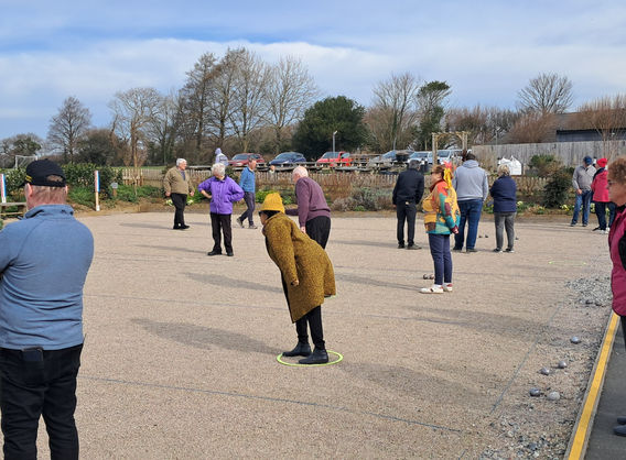 Our playing officer ( Nicky) arranged a melee with 5 sets of doubles from Truro, 2 sets of doubles and 3 sets of triples from Tregony. All matches were played on 3 separate Pistes. As the weather was fairly good we manged to play all 3 matches, per teams, prior to lunch.